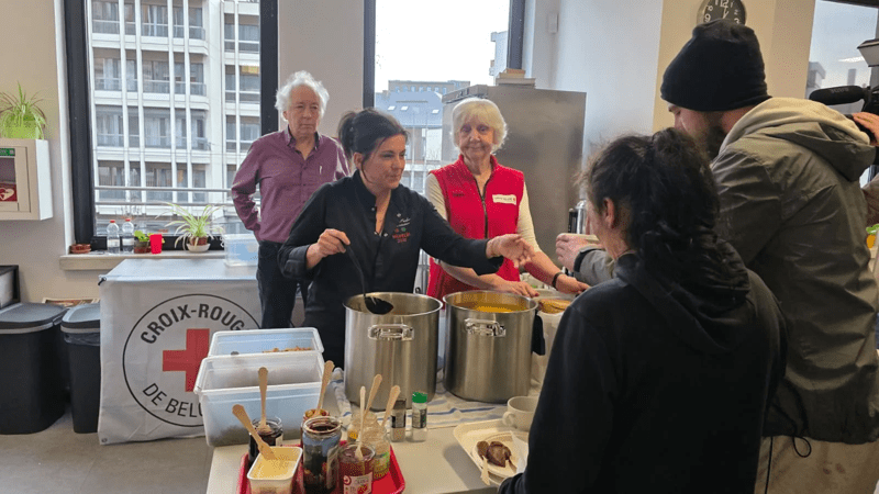 Le 15 décembre, la cheffe étoilée Arabelle Meirlaen (1 étoile Michelin) a mis son talent culinaire au service de la Croix-Rouge, en cuisinant aux côtés des bénévoles du centre d’accueil de Liège, les 60 litres de soupe quotidienne destinés aux personnes sans-abri et vivant dans la grande précarité.