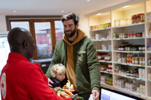 Dans les épiceries de la Croix-Rouge, les personnes en difficulté choisissent librement, comme dans un supermarché, parmi des produits de qualité. Elles sont actrices de leur consommation.